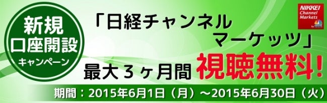 当社では2015年6月1日(月)より新規に口座開設頂いたお客様を対象に、「日経チャンネルマーケッツ」が最大で3ヶ月間無料で視聴頂けるキャンペーンを実施いたします。
