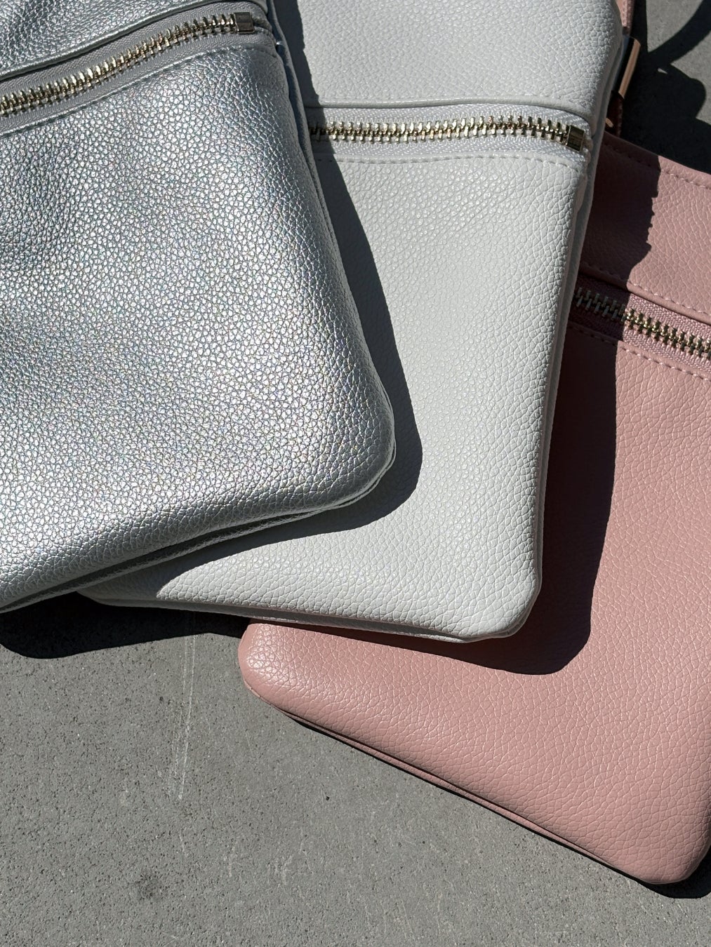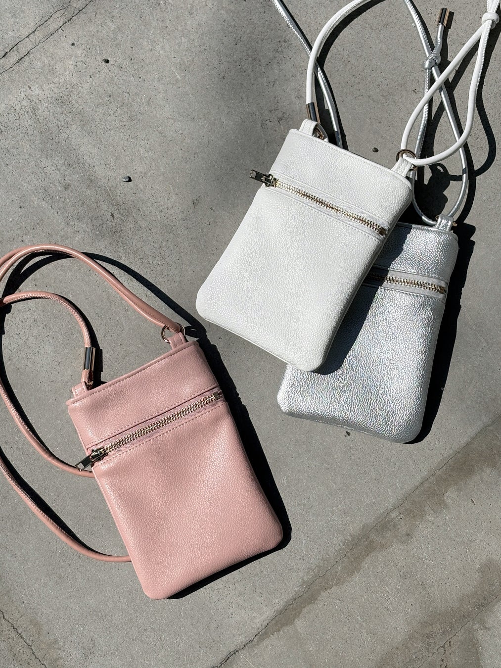 スマートフォンやカード類、リップなどが入るコンパクトなサイズ感で、ちょっとしたお出かけにぴったりのアイテム。オフホワイト・シルバー・ソラリアプラザ店限定のピンクから、お好みのカラーをお選びいただけます。