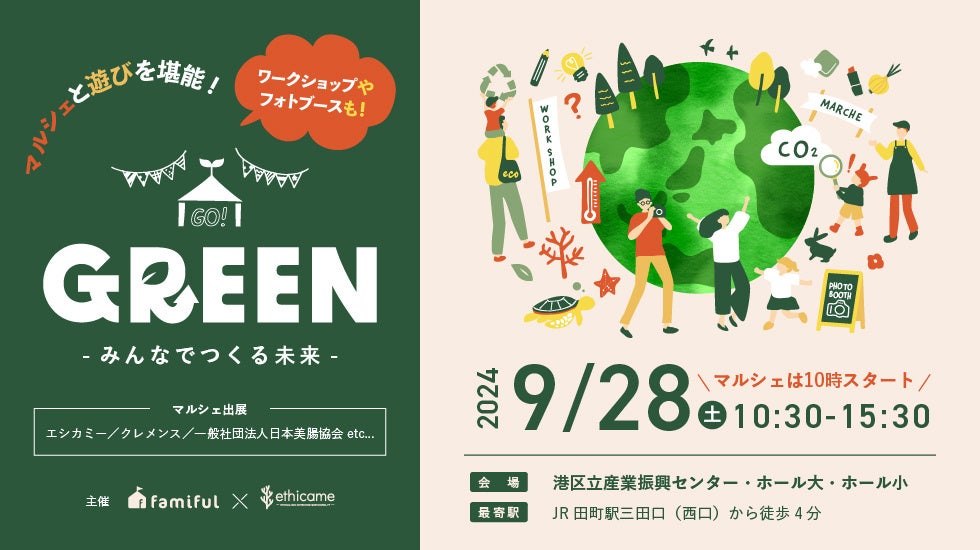 9月28日(土)地球と人に優しいECストア「ethicame(エシカミー)」と、子どもの体験型サービス「Famiful(ファミフル)」の共催イベント「GREEN~みんなでつくる未来~」開催決定!