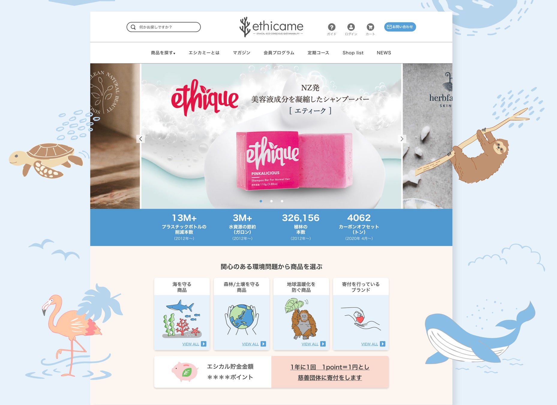 2019年からサステナブルなビューティーバーブランド「Ethique(エティーク)」の販売を開始し、独自の基準に沿った環境・社会・人に優しい製品を取り扱うECサイト「ethicame(エシカミー)https://ethicame.com/ 」をオープン。