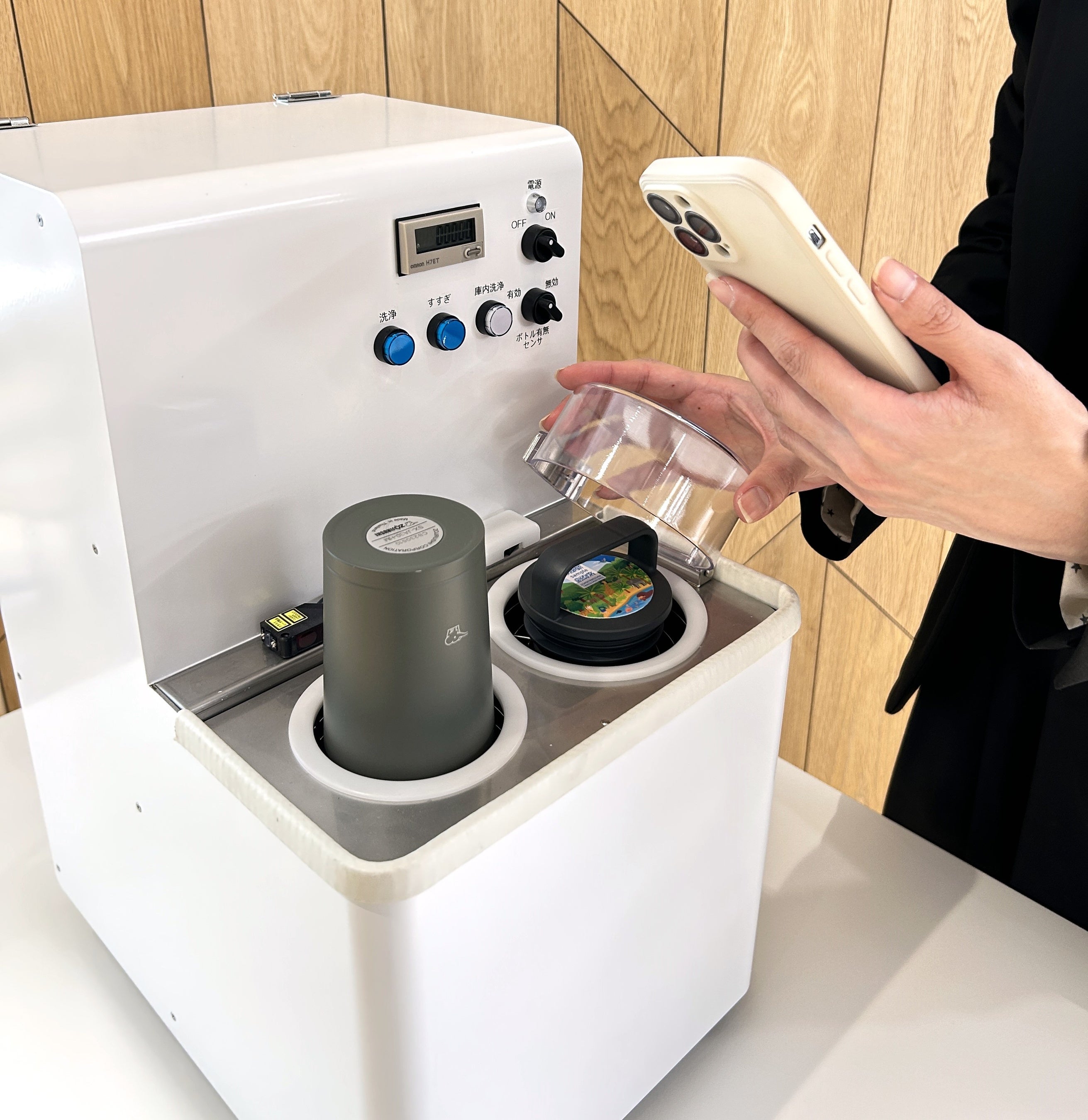 実際にサトー本社のショールーム併設カフェにおいても、年間約25,000個のプラスチックカップを利用し、マイボトル利用者は2%に留まっています。社会および社内の課題解決として、マイボトル利用を定着するにはどのような仕組みが必要か、という検討や調査をサトーで実施。その中で、マイボトルを使いやすい環境も整えていこうとする象印の「マイボトル洗浄機」とその取り組み知ったことを機に、このたびの共同研究に至りました。