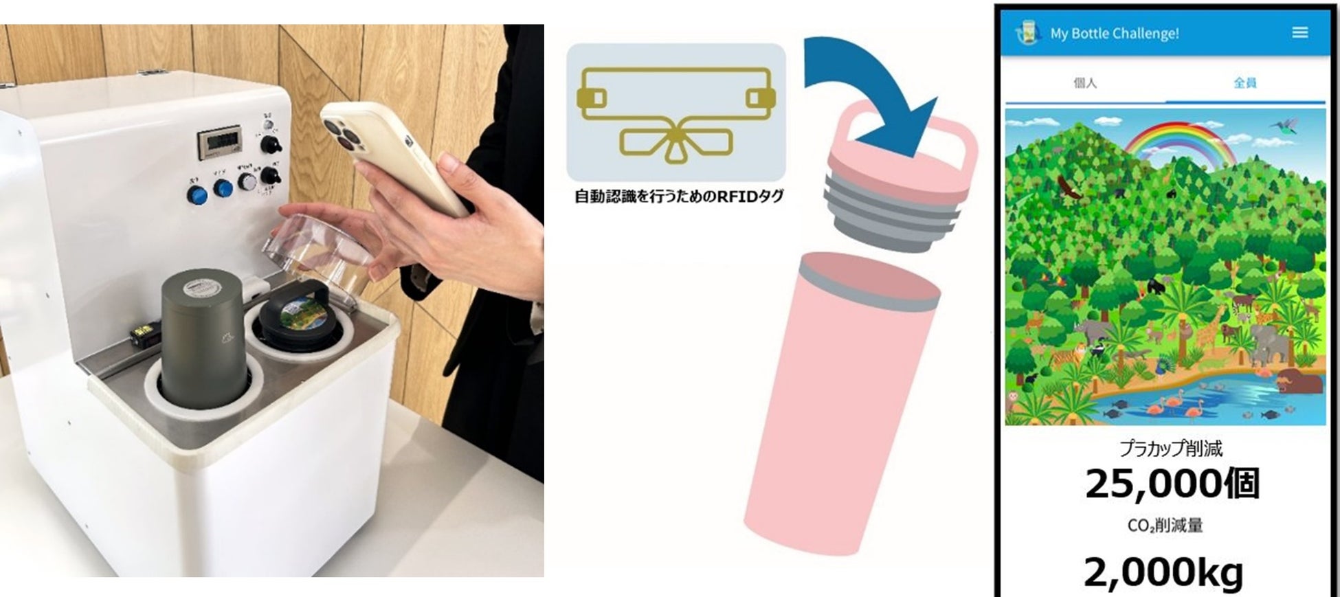 実証実験の期間中は、サトーショールーム(東京都・港区)に設置したマイボトル洗浄機ブースやRFID搭載のマイボトル、連動アプリケーション、実証実験の概要などについて、他企業様からの見学を受け付けいたします。