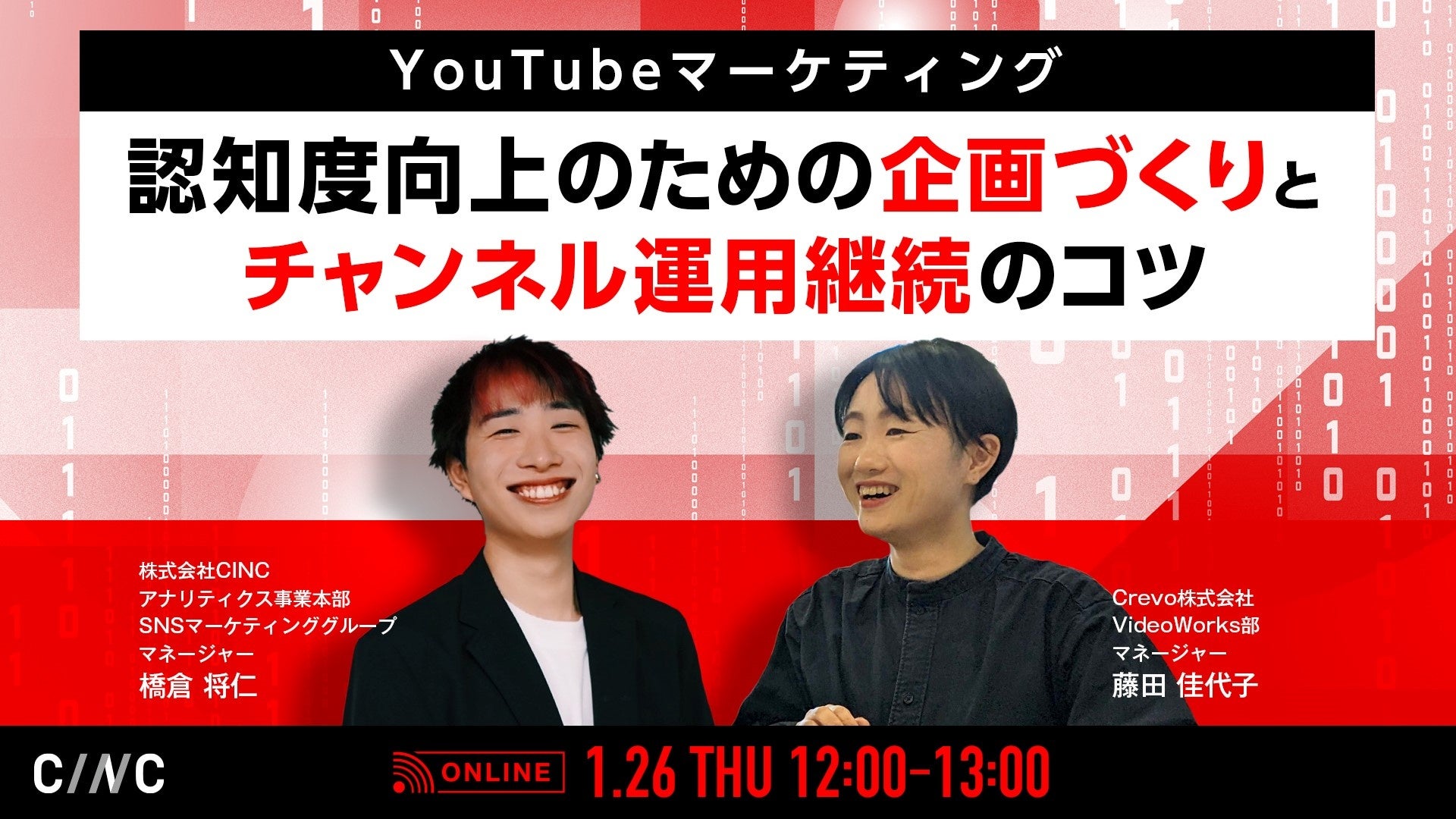 〈1/26開催〉CINC×Crevo「【YouTubeマーケティング】認知度向上のための企画づくりとチャンネル運用継続のコツ」