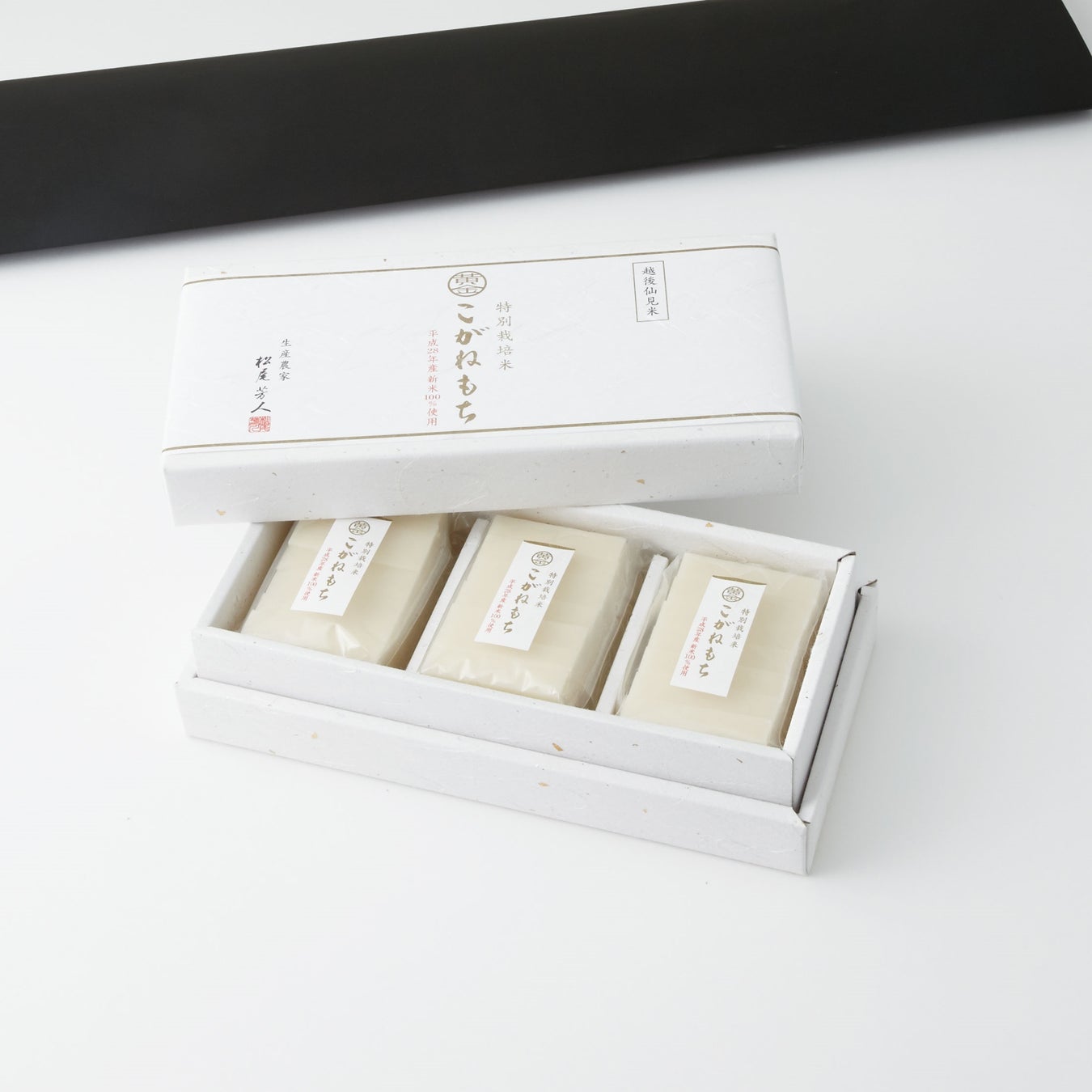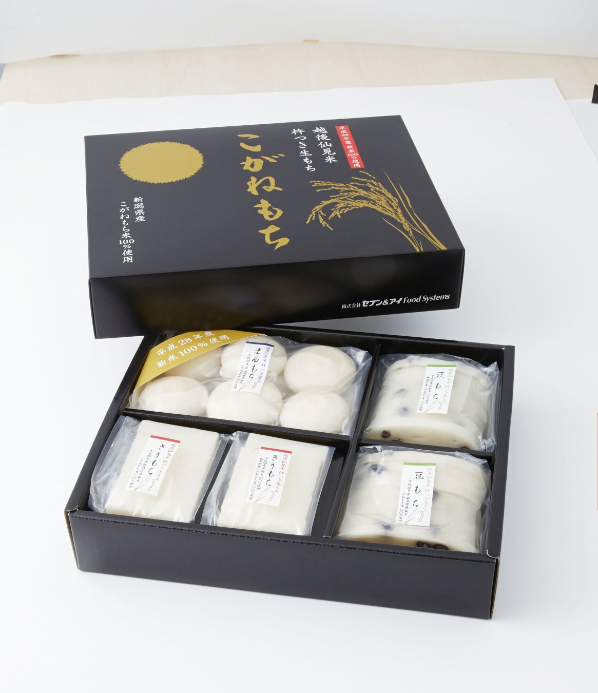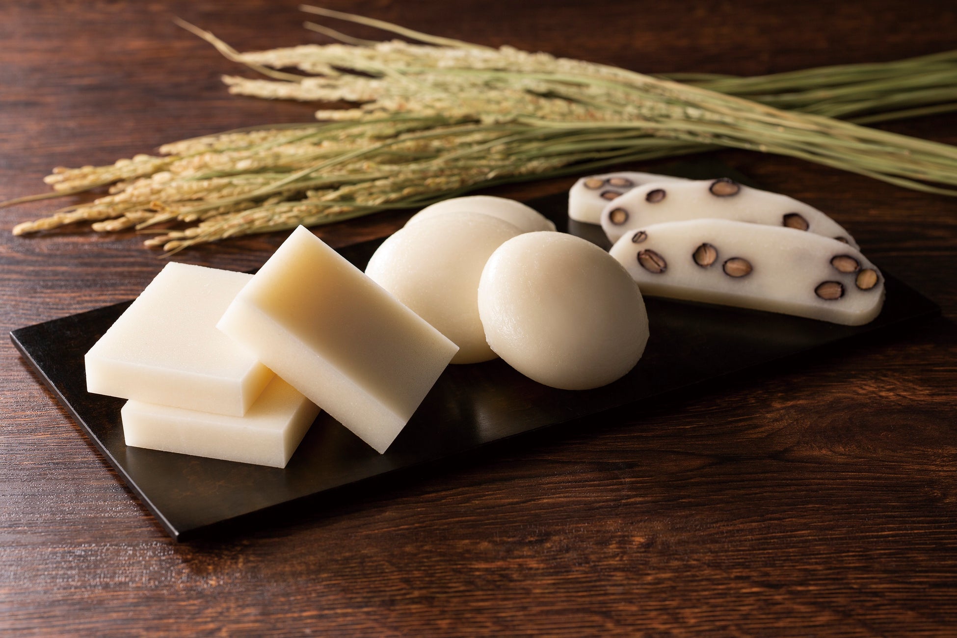 越後連山のふもと、清流「仙見川」の流れに恵まれた新潟県五泉市産の「越後仙見米」を100%使用しました。「特別栽培米こがねもち」は、越後仙見米の中でもさらに生産農家を限定し、特別に育てられたもち米のみを使用しています。