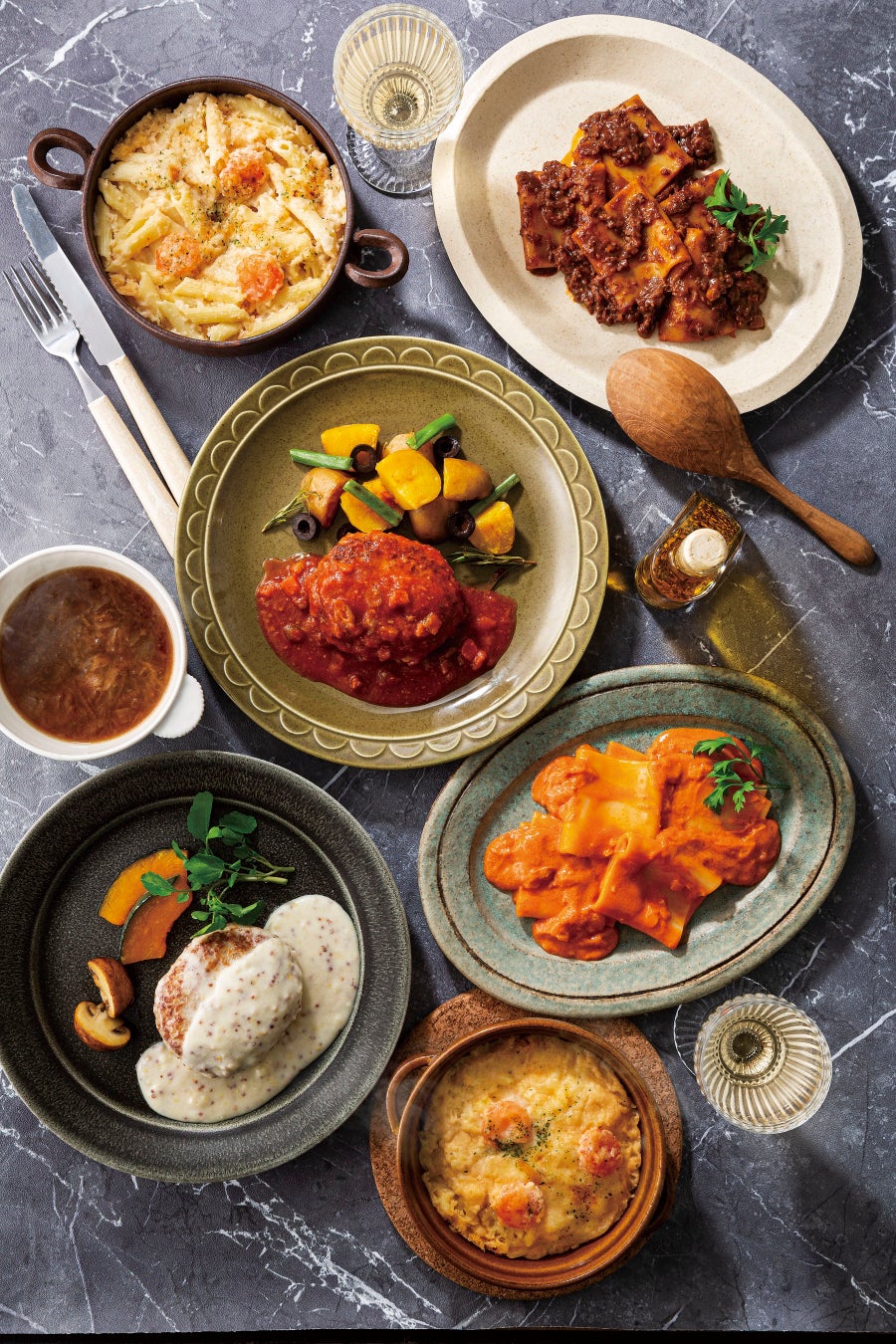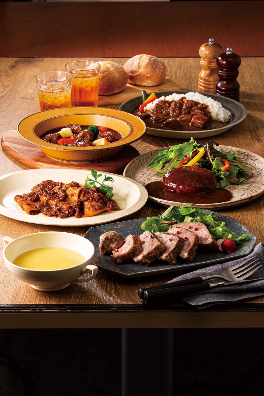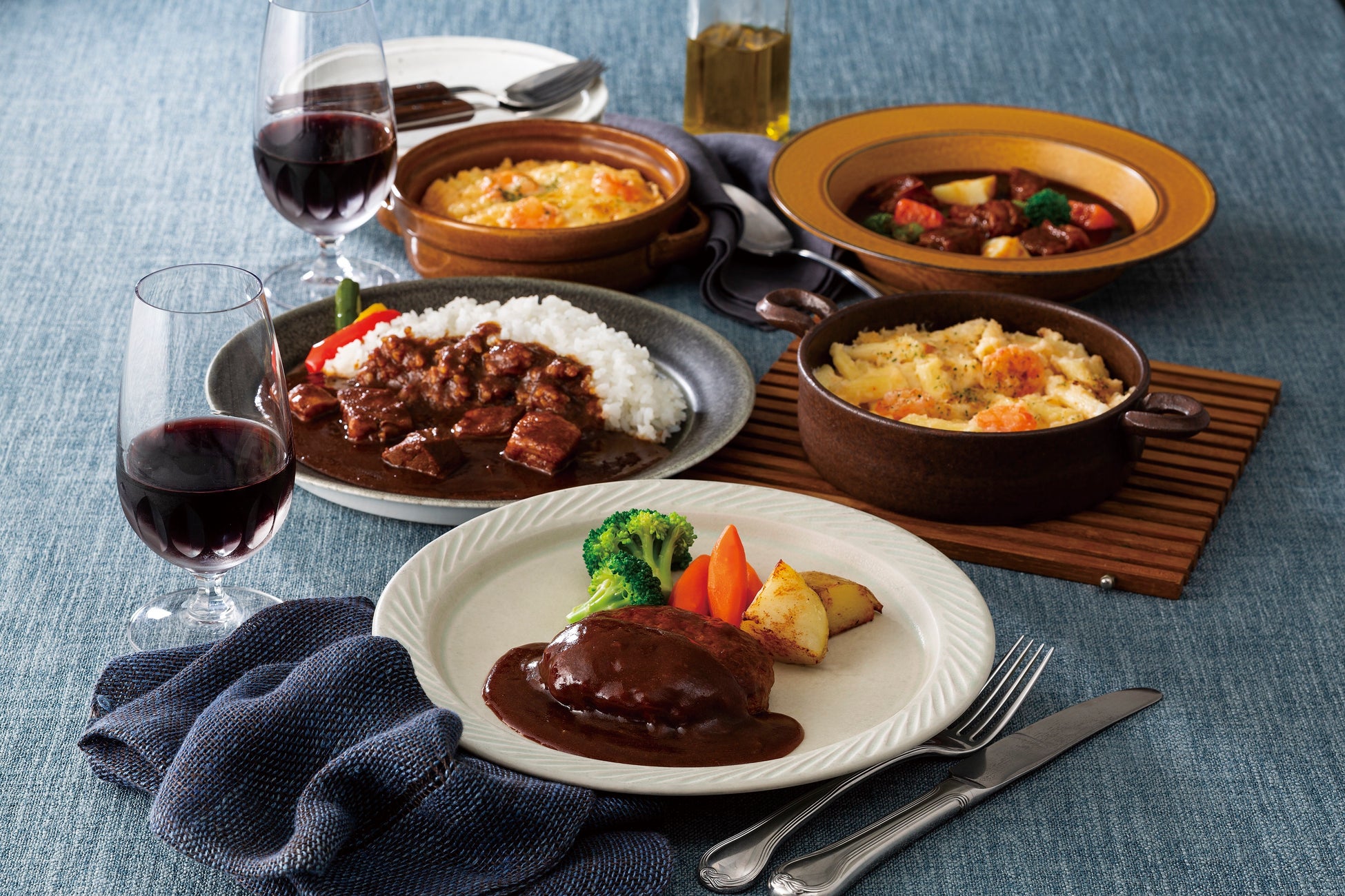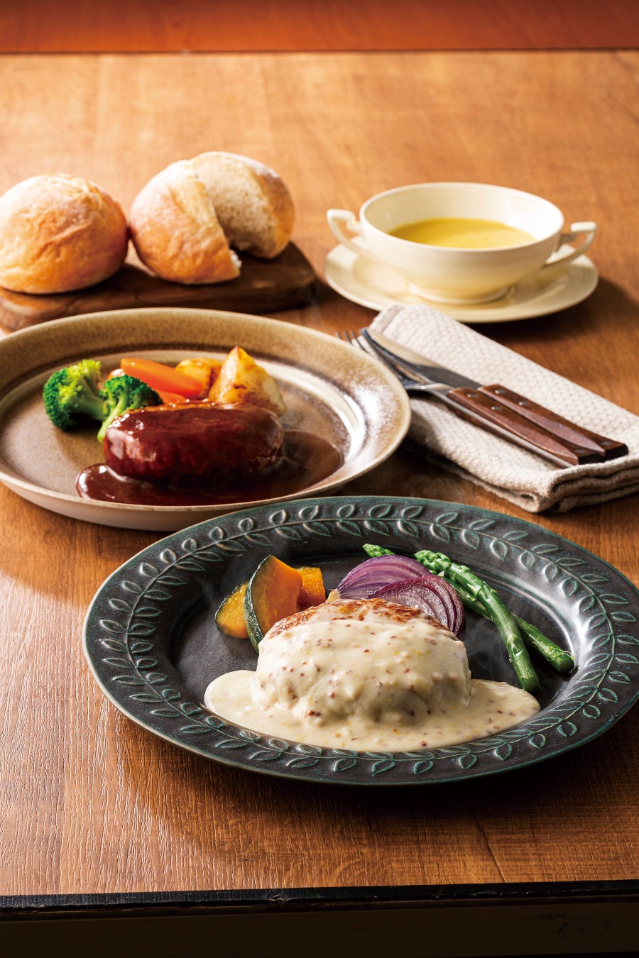 定番のデミグラスハンバーグ、じっくり時間をかけて煮込んだビーフシチューにビーフカレー。コクがあり、なめらかなソースのドリアやグラタン。デニーズレストランが得意とする洋食の王道メニューをセットにしました。