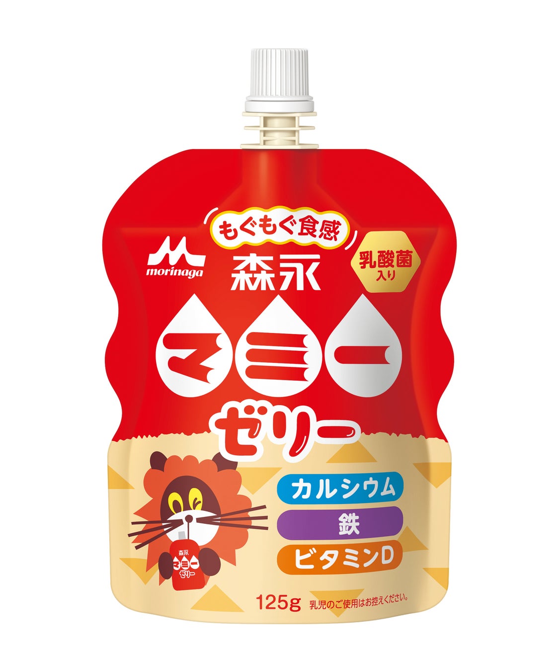 育ち盛りのお子さまの成長を応援するカルシウム、鉄分、ビタミンDをたっぷり配合、さらに森永乳業独自の機能性素材で健康力をサポートする「シールド乳酸菌®」を100億個配合したゼリー飲料です。ママ・パパ世代が子どもの頃から親しんできた「森永マミー」の味わいをもぐもぐ食感のゼリーで、親子で楽しむことができます。