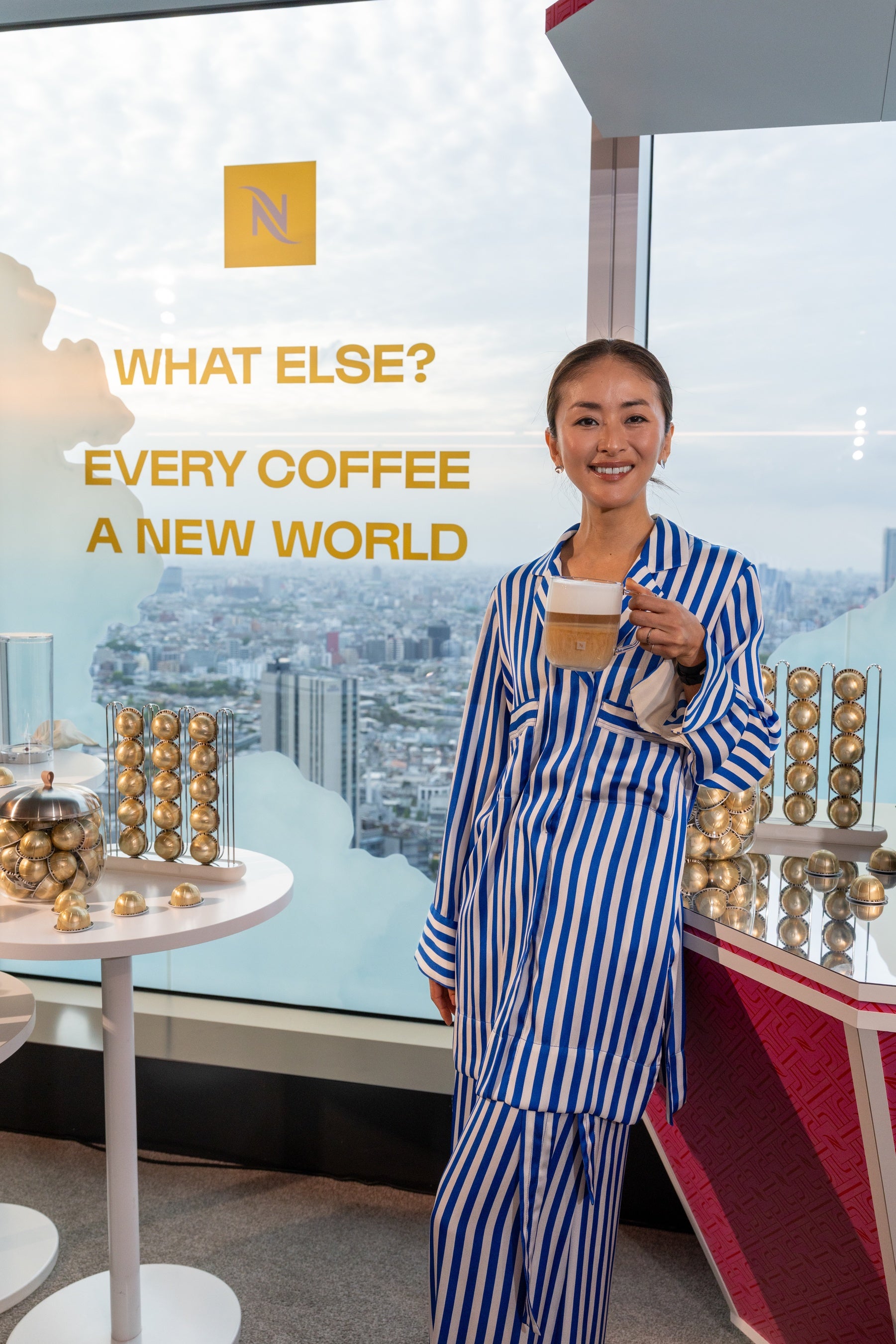 会場を訪れた石田さんは、「普段からネスプレッソのコーヒーメーカーを使って毎朝コーヒーを淹れており、今日も出かける前に楽しんできました。朝起きて窓を開け、その日の気分や自分のスタイルに合わせてコーヒーを選び、外を眺めながら過ごす時間が、私のモーニングルーティンです。」と、MORNINGのコンセプトルームにちなみ、朝のコーヒーの楽しみ方をご共有いただきました。