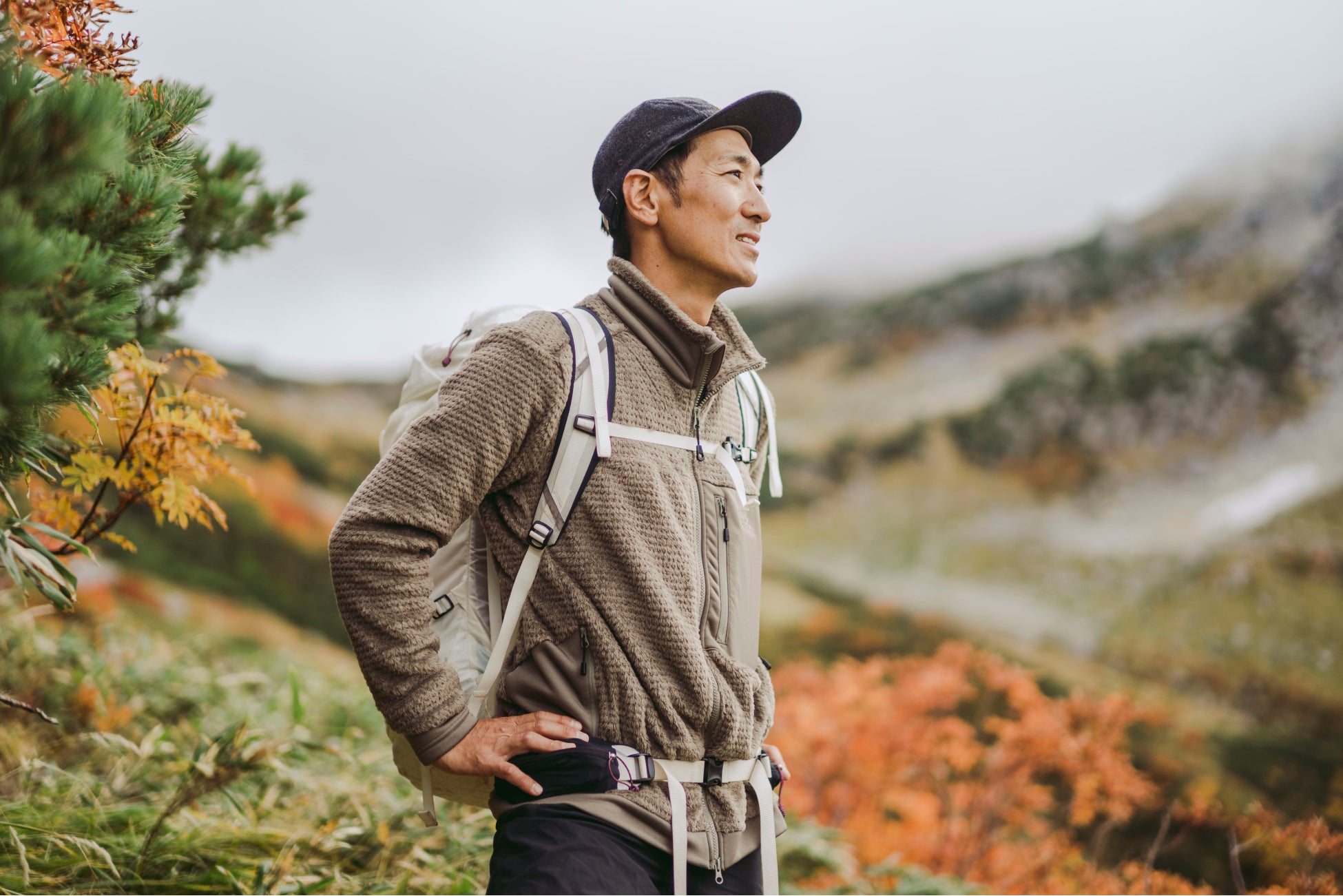 「保温」と「通気」この相反する要素を満たし、行動中も快適に着ていられるフリースジャケットをつくれないだろうか?この難題にヤマップとマウンテンハードウェアが取り組みました。従来のフリースは、保温力に優れ、濡れに強く、アウトドアシーンでは寒さから身を守ってくれる一方で、行動中の着用には不向きで、熱がこもってしまい、体温調節が難しいという特性がありました。たとえば、秋冬の登山では、行動中は暑くなり、休憩中は寒くなるため、その度に脱ぎ着する必要がありました。