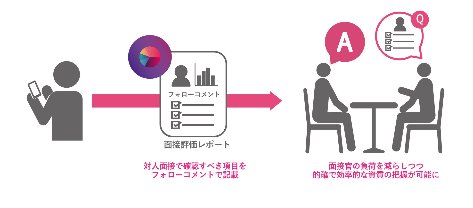 また、受検者にとっても、自身の評価や回答に即した面接が行われることで、自身の特徴をより正確に伝えることが可能となり、面接における納得感の向上や選考辞退率の低下にも寄与します。