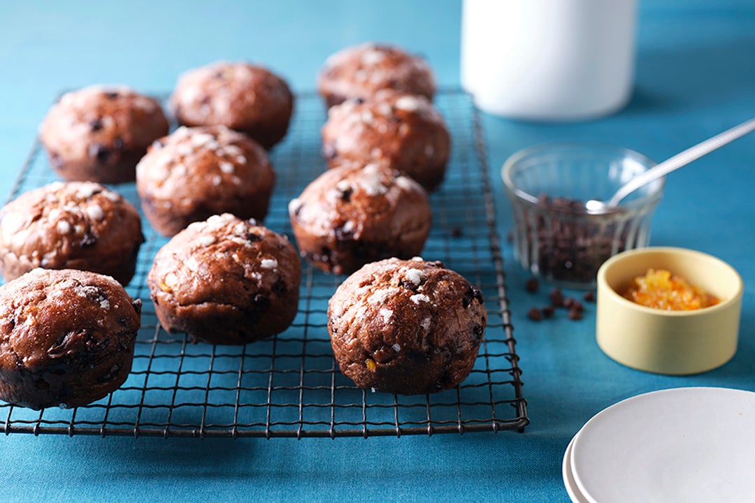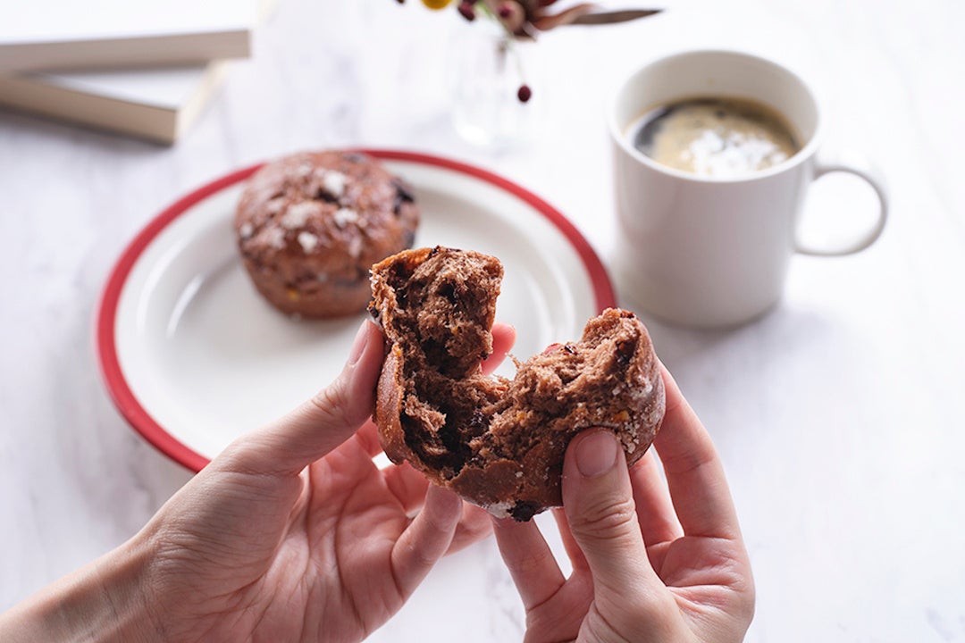 特長: 水の代わりに牛乳を使用し、バターとココアパウダーを加えて練り上げたリッチな生地。更にチョコチップと爽やかなオレンジピールを混ぜ込み、スイーツのような満足感が得られる味わいに仕上げました。