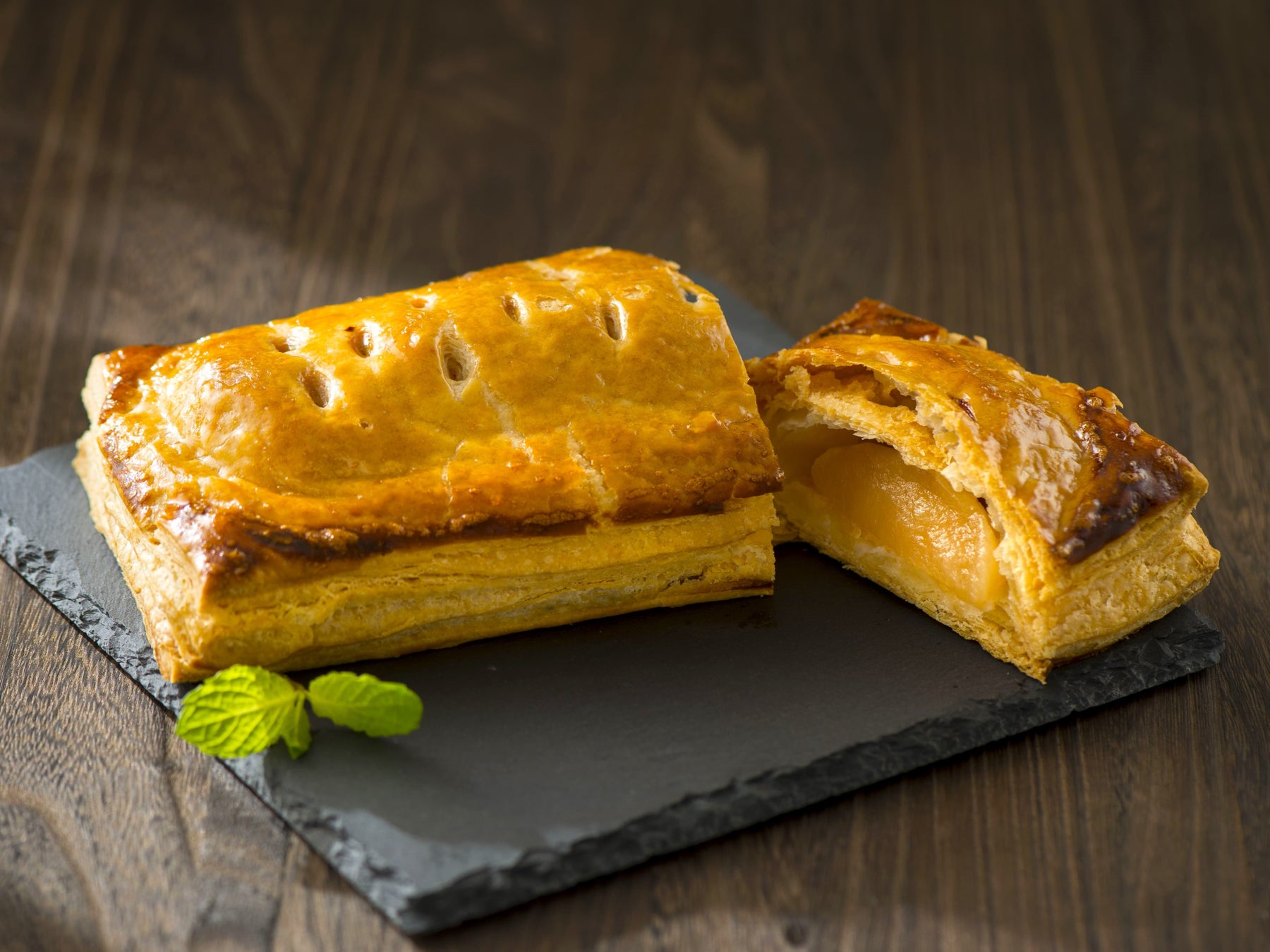 山形県朝日町産の紅玉を、発酵バターを練り込んだパイ生地で包み、低温でじっくり焼き上げています。寒暖差の激しい土地で育ったリンゴならではの甘酸っぱさが、懐かしい味わいを生んでいます。
