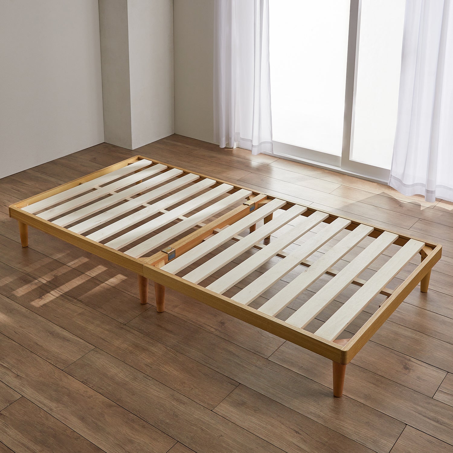 組み立てが簡単な理由は、ベッドフレームと床板のすのこ部分が一体式だから。扱いづらい長いフレームも2つに分解することで、組み立てしやすい。