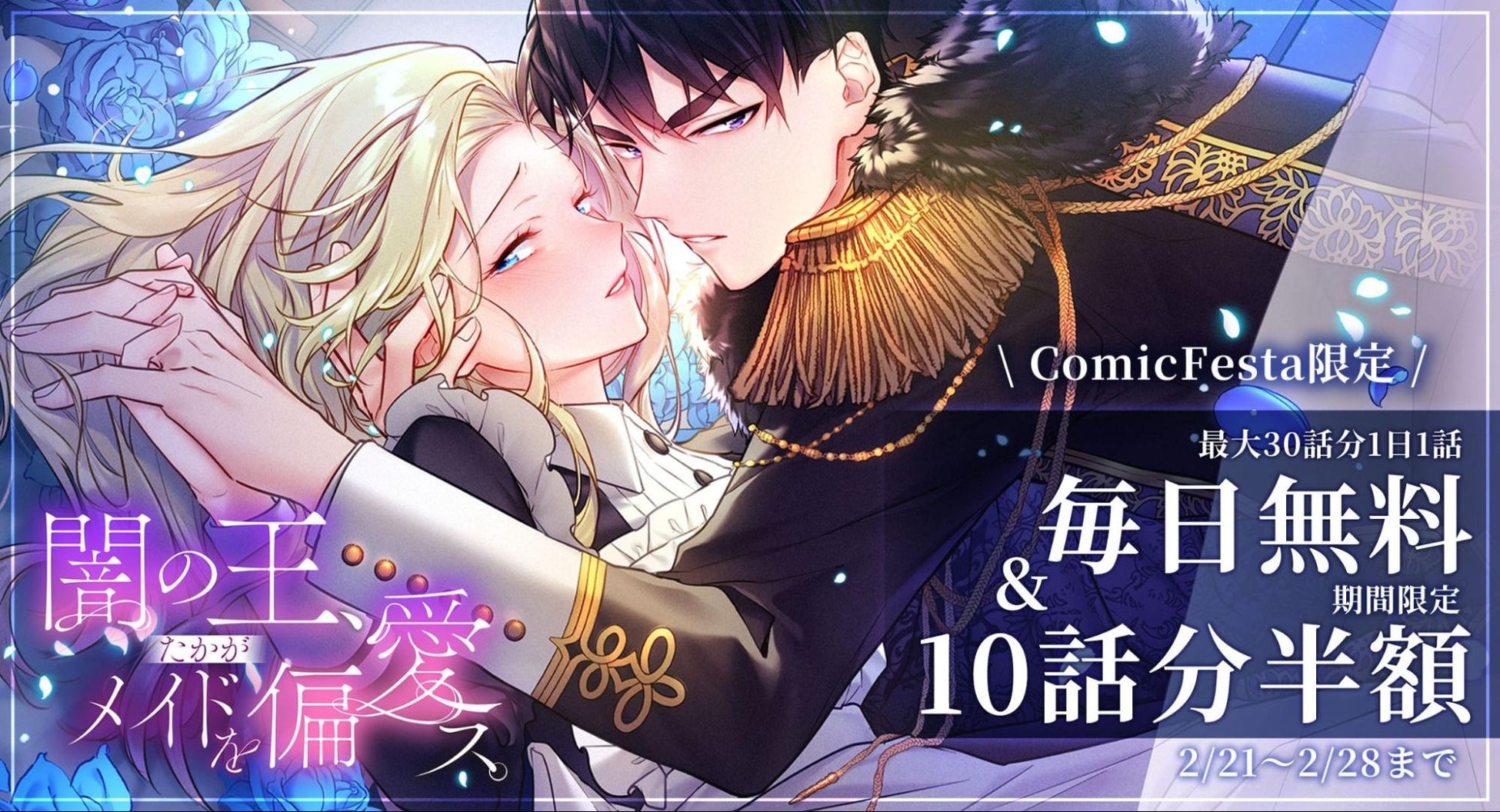 株式会社ウェイブ(本社:東京都豊島区、代表:関口航太)が運営するwebtoon制作スタジオ「studio73」より『闇の王、たかがメイドを偏愛ス。』の完結を記念して、同じく株式会社ウェイブが運営する電子コミック配信サービス「ComicFesta(コミックフェスタ)」にて本日2月21日(金)より、『完結記念キャンペーン』を実施いたします。