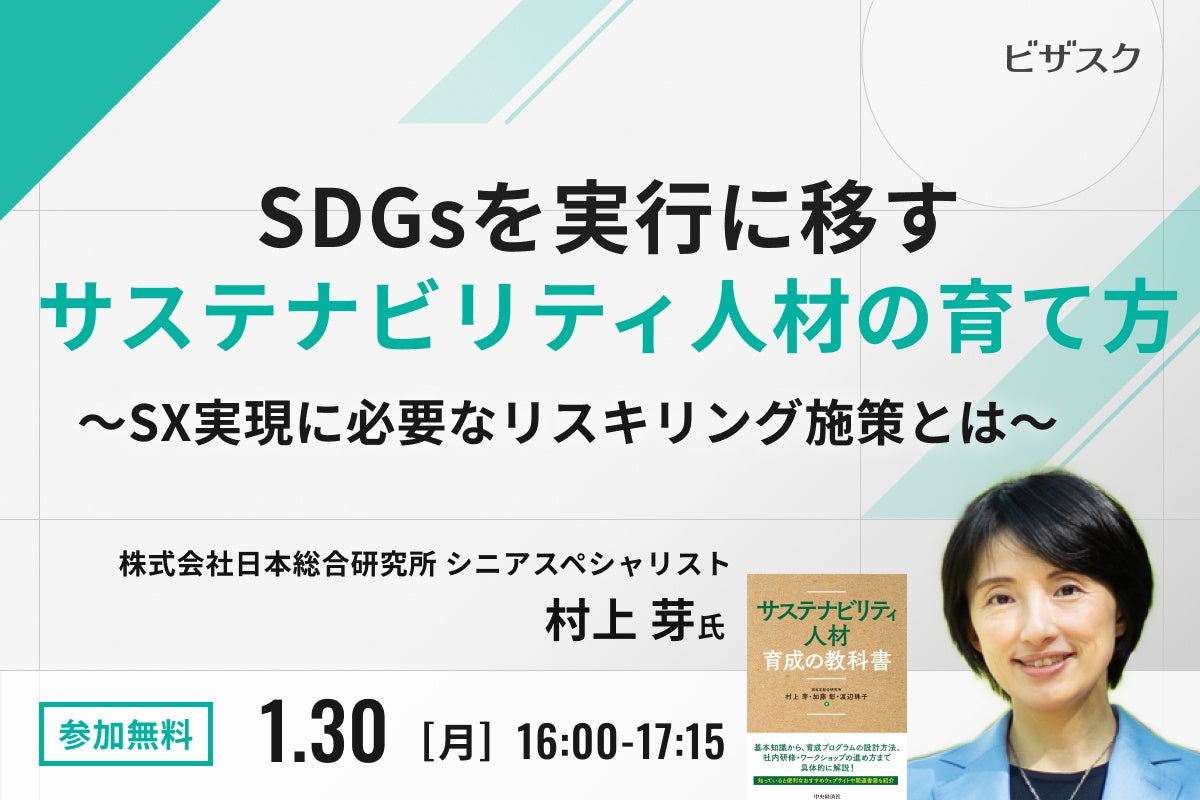 【1/30(月)16時】無料オンラインセミナー「SDGsを実行に移すサステナビリティ人材の育て方 〜SX実現に必要なリスキリング施策とは〜」を開催