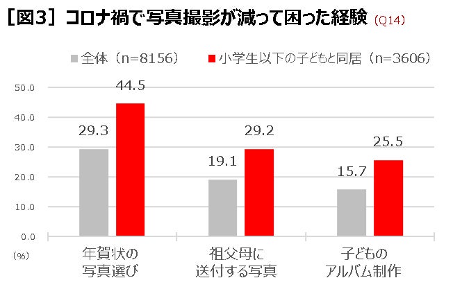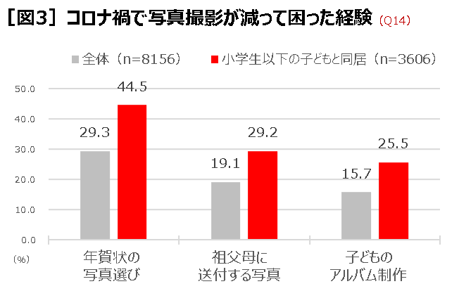 ■写真を撮る機会が減って、小学生以下の子どもがいる家庭の半数で「年賀状の写真選び」が困難に