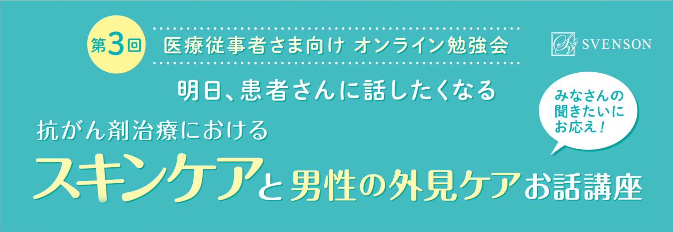 スヴェンソングループの株式会社スヴェンソン(本社:東京都港区、代表取締役社長 児玉義則)レディス事業部は、医療従事者向けのオンライン勉強会『抗がん剤治療におけるスキンケアと男性の外見ケア』お話を、2022年2月24日(木)・25日(金)に開催いたしました。