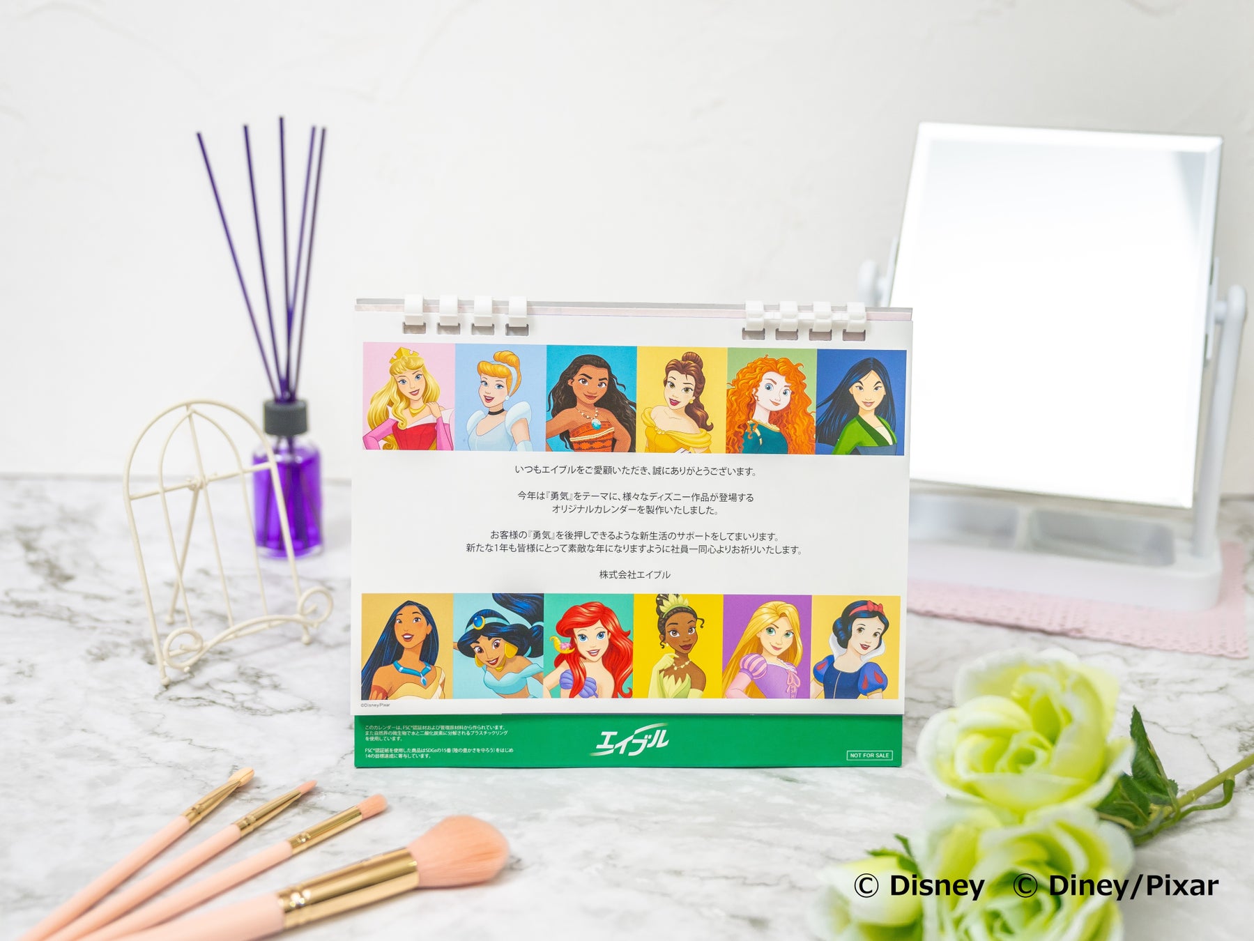新生活を始める方へ一歩踏み出す勇気とエールをお届けしたいと思い、毎月異なる12人のディズニープリンセスが登場し、夢や希望が溢れる物語のシーンが描かれたデザインにしました。また、ディズニープリンセスのサインをはじめ、物語に欠かせない仲間のキャラクターも描かれており、お部屋に置くことで毎朝のメイク時間や身支度の準備で気分が上がるように想いを込めて作りました。さらに、この卓上カレンダーは、各月ごとにスマートフォン用カレンダーの壁紙がダウンロードできるQRコードが記載されており、スマートフォンでも楽しむことが可能となっています。