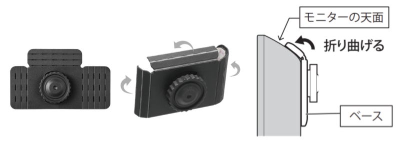 ・破線部で折り曲げられる『3D貼り付けベース』は、曲面にもフィットしやすく様々な形状のディスプレイに対応し、しっかりと固定できる