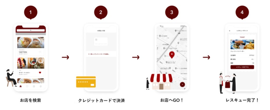 購入が確定するとお店に通知が届きます。購入者が来店したら、アプリの画面を確認して商品を渡せば「レスキュー」完了です。なお、ユーザーはアプリ上でクレジットカード決済を済ませてから引き取りに行く仕組みのため、店頭での金銭のやり取りは発生しません。