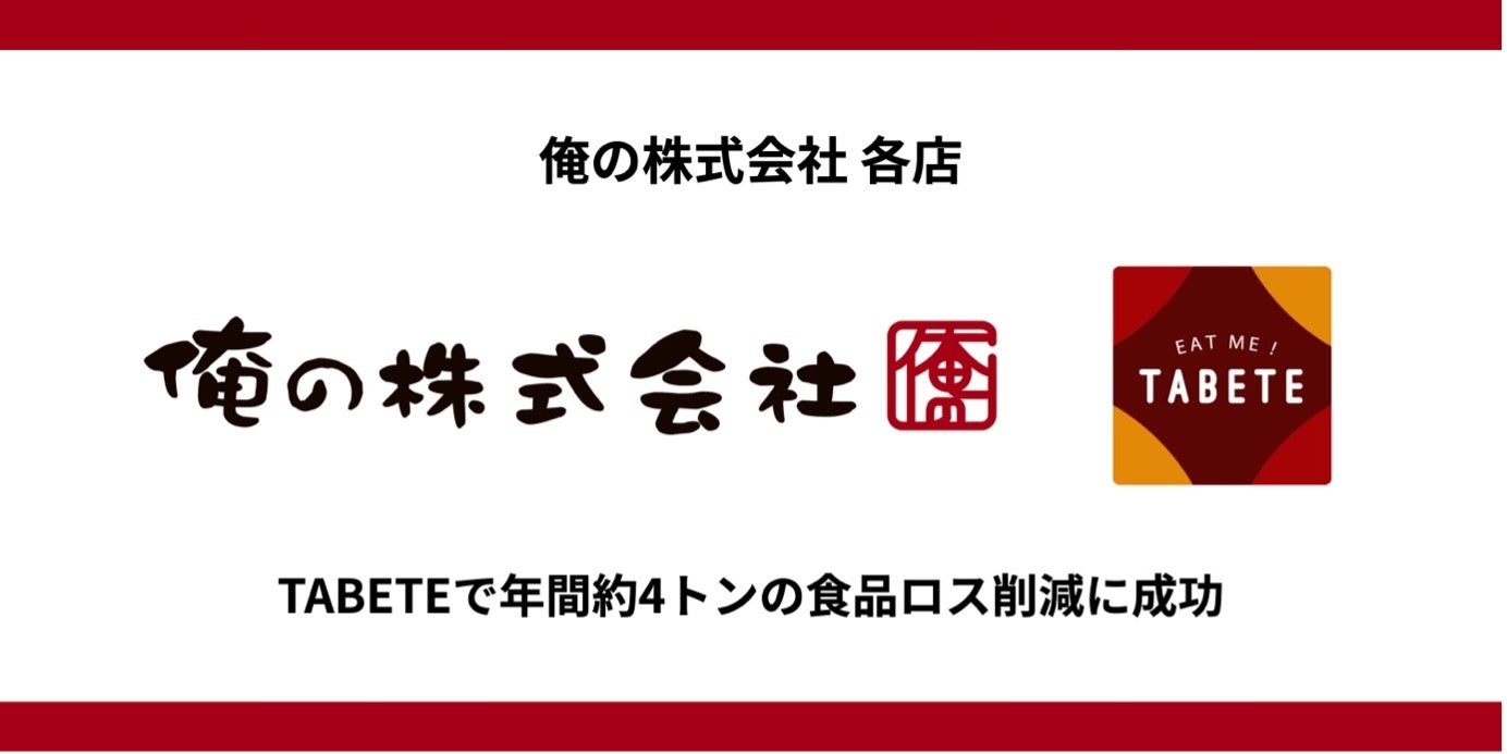株式会社コークッキングの展開する食品ロス削減のためのフードシェアリングサービス「TABETE(タベテ)」を通し、俺の株式会社が運営する「俺のBakery」「俺のやきとり」「俺の焼肉」の各形態含む11店舗が、一年間で約4トンの食品ロス削減に成功しました。同社ではTABETEの導入により、店舗によっては80%以上もの原価回収率を達成しています。