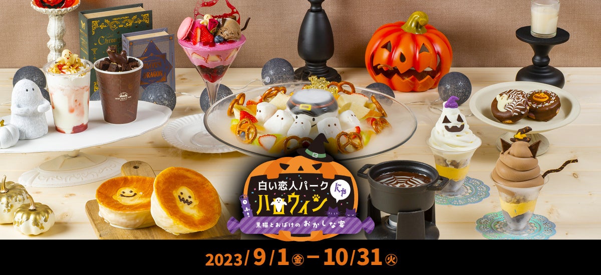 イベント期間中は、「黒猫」や「おばけ」をイメージした白い恋人パークオリジナルスイーツをお楽しみいただけるほか、仮装で入館無料(中学生以下)や、ISHIYAのお菓子をつかった「トリックオアトリート」、「かぼちゃのランタンづくり」などを行います。