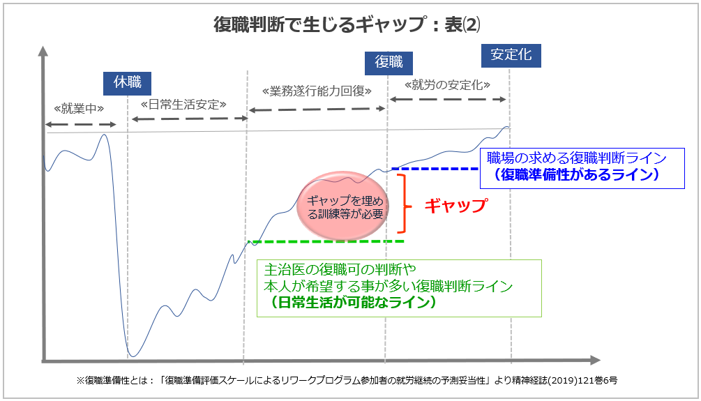 生活リズム安定化のサポート、業務遂行能力の回復、原因理解・再発防止策の習得、企業の復職判断の支援