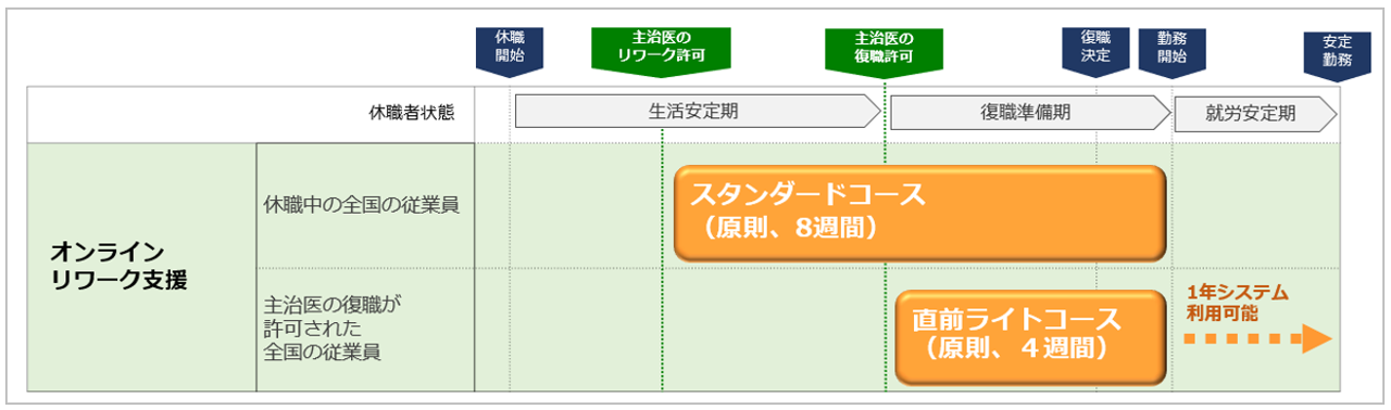 ・スタンダードコース(原則8週間):休職中の全国の従業員が対象