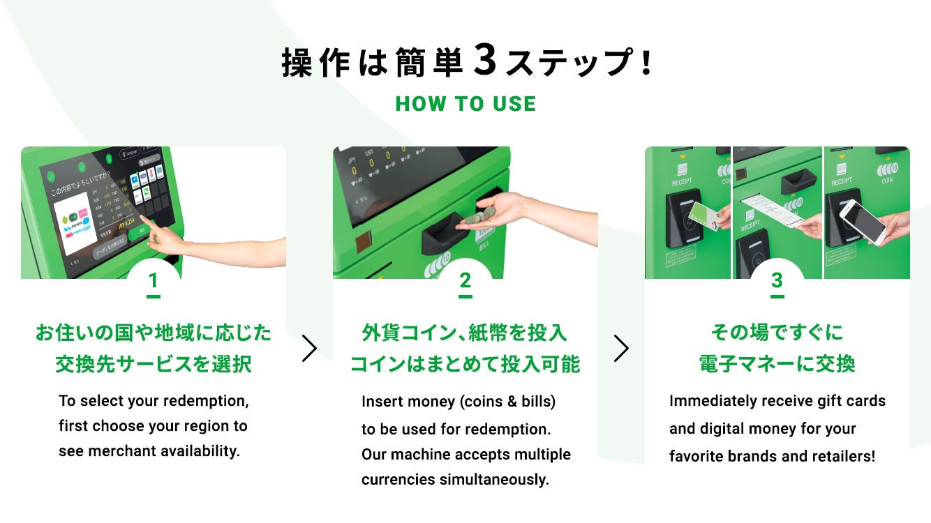 今回の取り組みを通して、海外から帰国された際に両替所を通さず、公共交通機関で使える交通系電子マネーやコンビニ等で利用可能な楽天Edy、WAON、nanacoといった電子マネーへ簡単/瞬時に交換し、日本人旅行客・インバウンド旅行客問わず、誰にでも使いやすく利便性の高いサービスの提供を展開していきます。