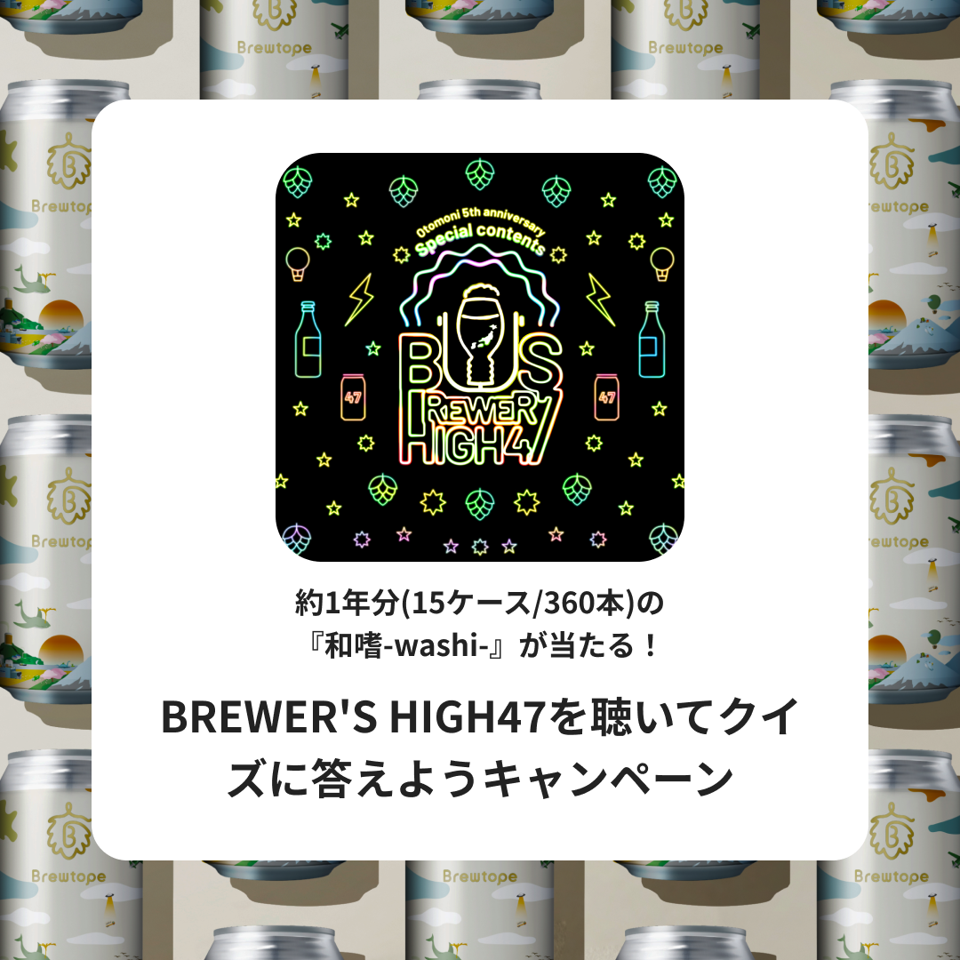 クラフトビール専門のPodcastインタビュー番組「BREWER’S HIGH47」を聴いて、簡単なクイズに答えるだけで、なんと最大で約1年分のクラフトビールが当たる、社内でも初の試みとなる特大プレゼントキャンペーンとなります。
