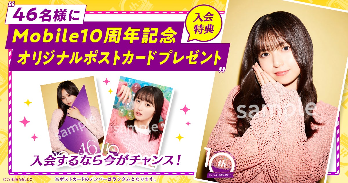 対象期間中に「乃木坂46 Mobile」に入会した方の中から、抽選で46名様にポストカードをプレゼントいたします。通常はガシャを引いてゲットするポストカードを、入会するだけでゲットできるお得なチャンス!