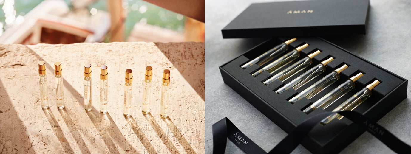 『アマン ファイン フレグランス コレクション』は、さまざまな土地からインスピレーションを得て、アイコニックなリゾートをイメージして作られました。著名な調香師ジャック・シャベール氏が手がけたコレクションは、アマンの記憶を呼び覚まし、“感性の旅”を提供する、ジェンダーニュートラルな香りのオードパルファムです。アマンを象徴する最初のリゾートでプーケットにあるアマンプリ、今年9月にオープンしたアマン ニューヨーク、水辺の古都に佇む美しいアマン ヴェニスなど、7つのリゾートをテーマにした香りをご用意しております。