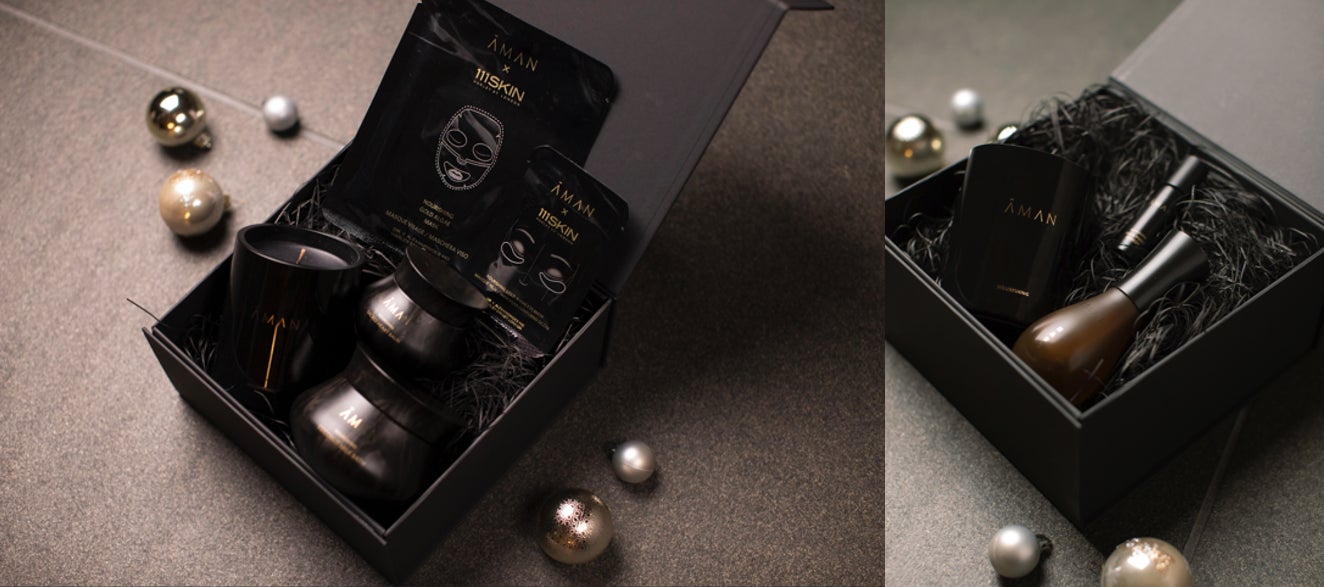厳選した天然素材を使用した『アマン スキンケア コレクション』より、喜びと心の安らぎをもたらす、ナリッシングラインのスキンケアアイテムと、”アマン スパ キャンドル”をセットにしたギフトボックスを2種ご用意いたしました。「フェスティブ ギフトボックス スキンケアセット」では、イギリス発のラグジュアリースキンケアブランド、111SKINとアマンが共同開発した新商品”アマン×111SKIN ゴールドマスク”をお試しいただけます。「フェスティブ ギフトボックス フレグランスセット」は、『アマン ファインフレグランス』より、お好みの香りのものをお選びいただけ、携帯できるロールオンタイプのフレグランスオイルが含まれます。