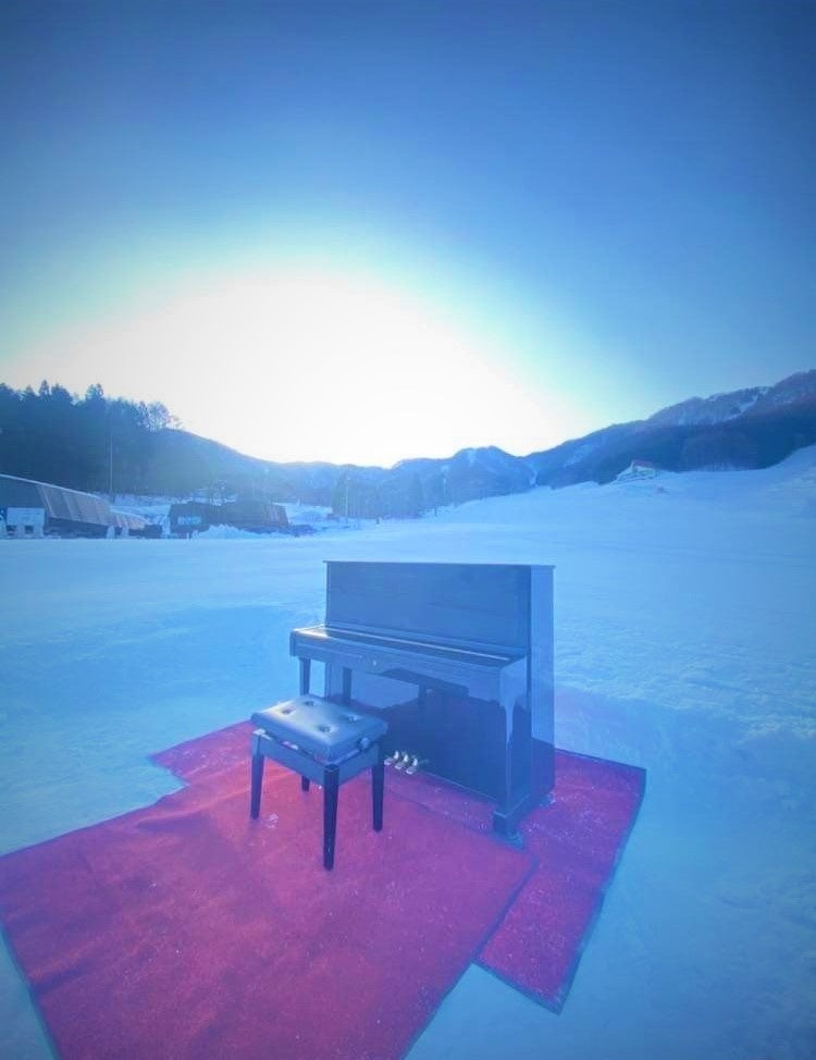 本年3月5日・6日には、絶好の晴天の下、日の出から日没後まで、ゲレンデ中央にピアノを移動し、ドローンでの空撮もできる企画を開催したところ、人気YouTuberピアニストや、天才小学生たちが、演奏のため来場くださいました。
