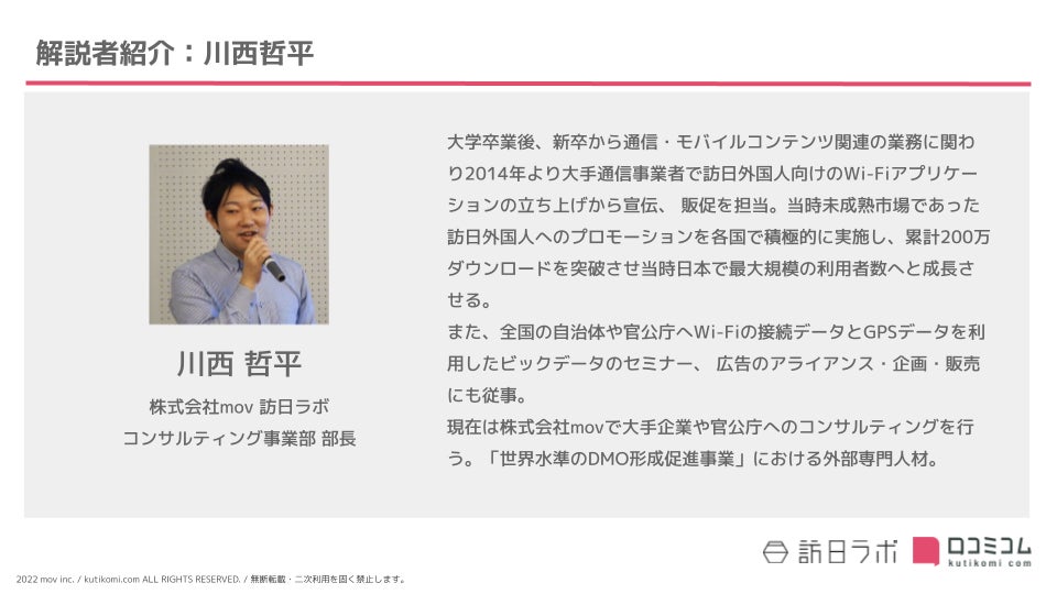 川西 哲平 - 株式会社mov 訪日ラボ コンサルティング事業部 部長
