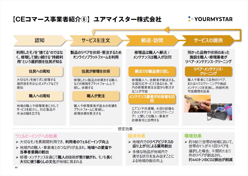 持続利用の促進によるサーキュラーエコノミーへの寄与を目指し、ハウスクリーニング・リペア・施設メンテナンス産業のIT化プラットフォーム「ユアマイスター」を展開するユアマイスター株式会社(本社:東京都目黒区、代表取締役社長:星野貴之)は、経済産業省 関東経済産業局が2026年3月に制作した「CEコマースガイドブック」において、CEコマースの事業者事例として掲載されました。