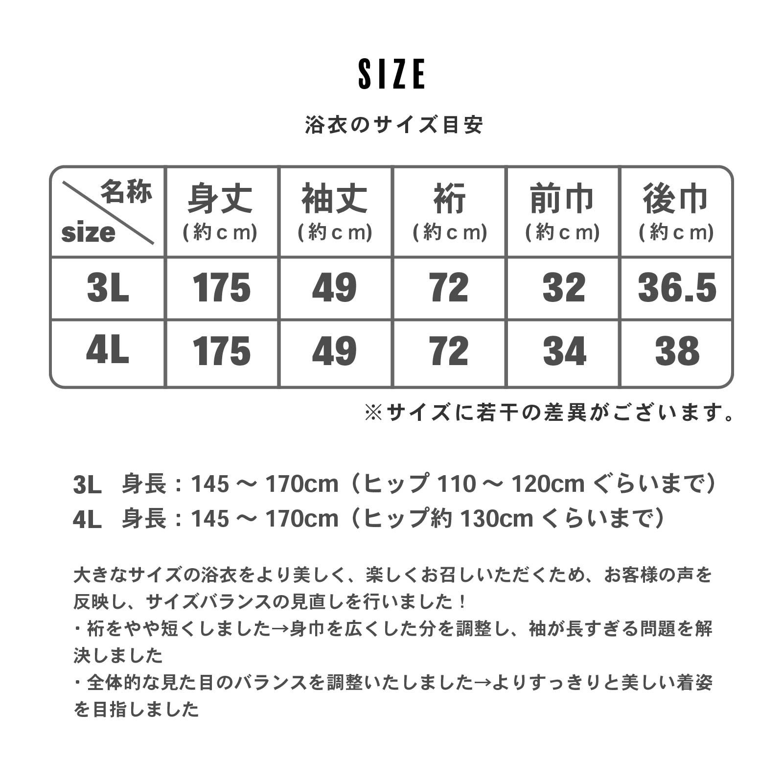 浴衣単品:S~LL(12,100円)、3L~4L(13,200円)