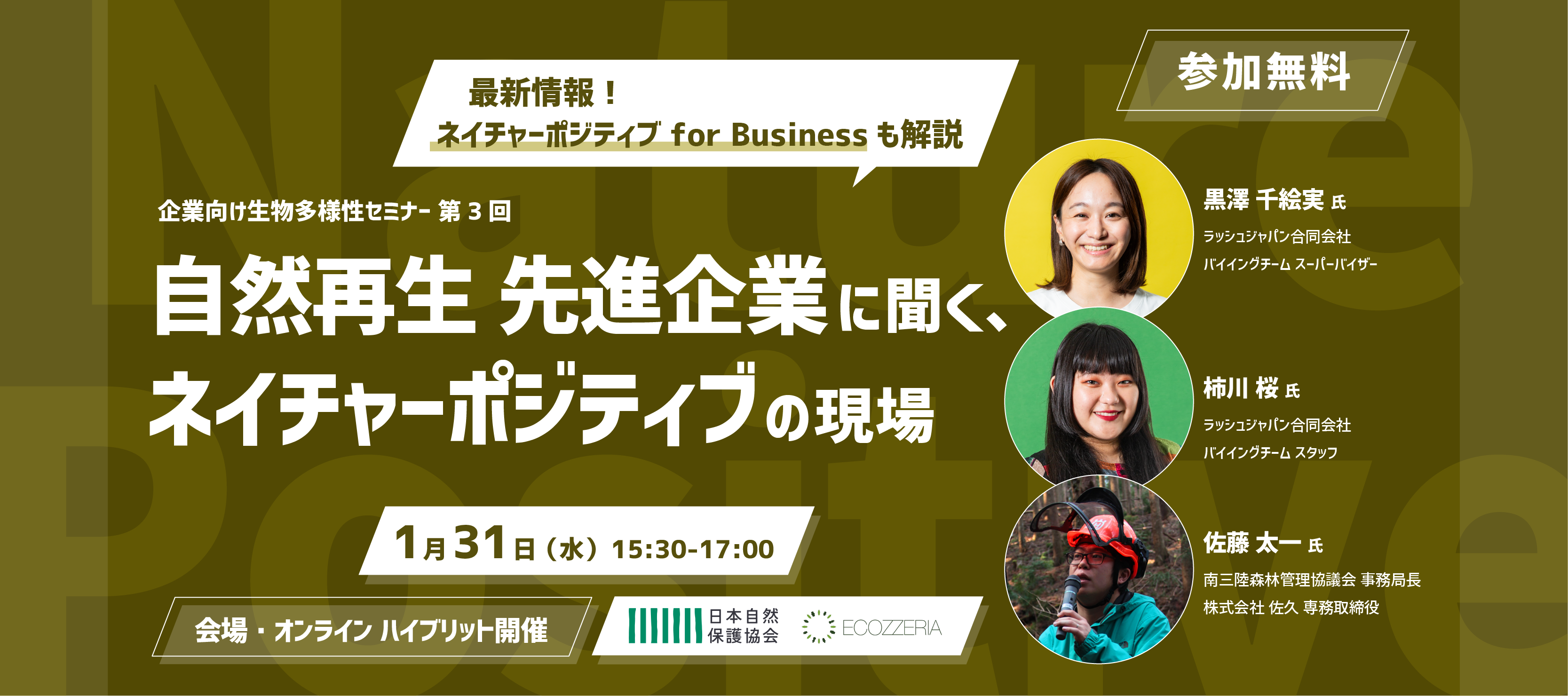 ● 第3回は「自然再生 先進企業に聞く、ネイチャーポジティブの現場」と題し年明け1/31(水)に開催