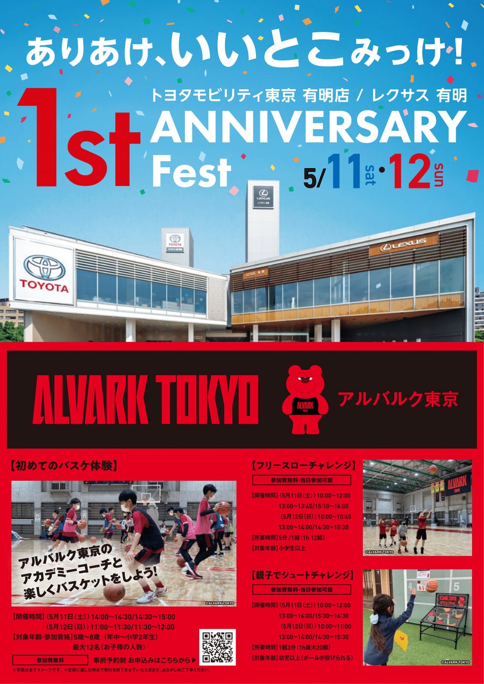 オープン当初からYACYBER直売所を常設しているトヨタモビリティ東京 有明店 Ariake Miraieが開店1周年を記念したイベント「1st ANNIVERSARY Fest」。バスケットボールチーム「アルバルク東京」とのスペシャルコラボのコーナーの他、音楽演奏会や手作りワークショップ、キッズエンジニア体験等、お友達同士、ご家族皆様で盛り上がること間違いなしです。