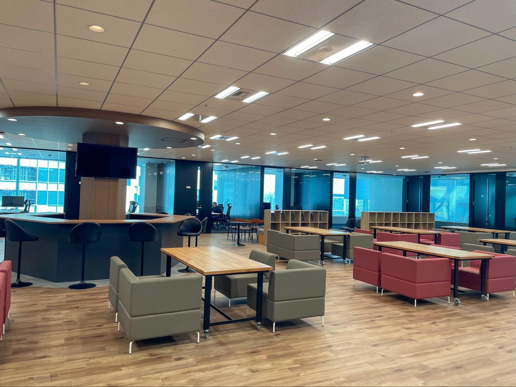 渋谷を一望できる大きな窓からの景色による高揚感、目的に応じて柔軟に変化するレイアウト、家具はその一助となると考えております。