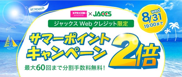 エクスプライス株式会社(本社:東京都江東区、代表取締役社長:稲積憲)は家電EC「XPRICE本店(https://www.premoa.co.jp)」にて、2022年6月1日(水)10:00~2022年8月31日(水)19:00まで、「ジャックスWebクレジット限定!サマーポイント2倍キャンペーン」を実施いたします。