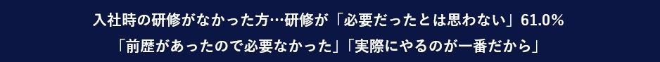 では一方で、入社時に研修がなかったと回答した方について、入社時に研修は必要だったと思うかを聞いてみたところ、「必要だったとは思わない」が61.0%という結果でした。