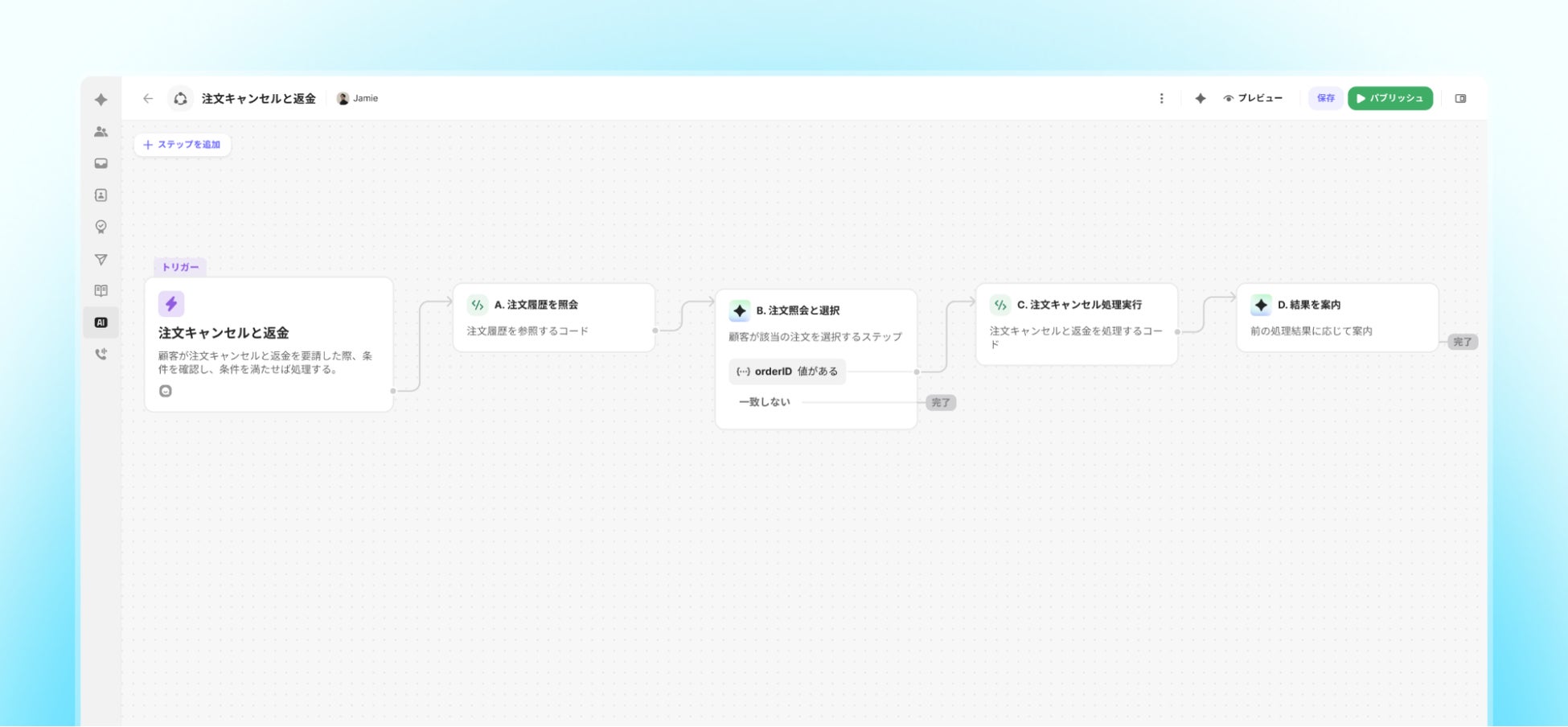 顧客がよく問い合わせする特定の業務を一連のフローで自動対応できる機能です。