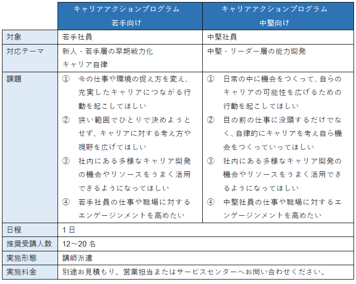 「キャリアアクションプログラム(若手向け/中堅向け)」サービス提供開始
