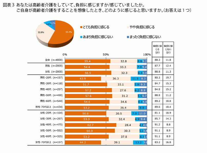 - 「介護を負担に感じる」が9割近く