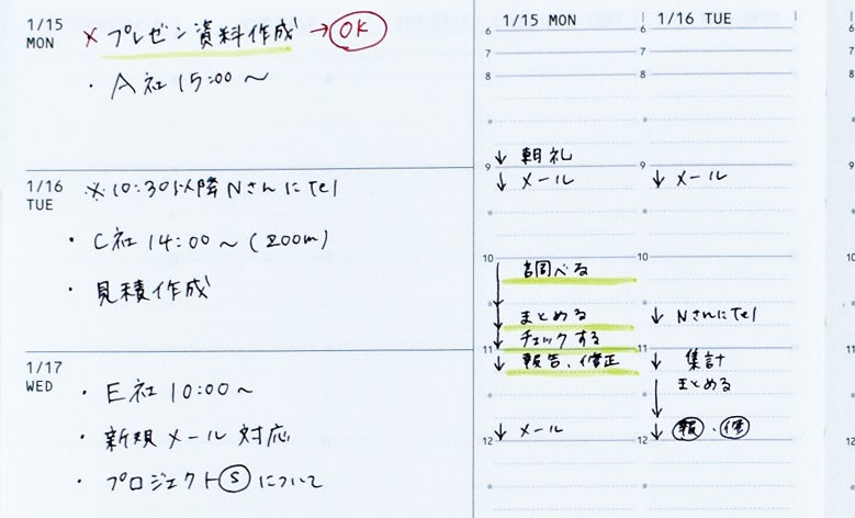 ・1時間枠の中にTODO(タスク)を書くとごちゃごちゃしてしまって使いづらい感じがあった。パッとみて把握しづらい