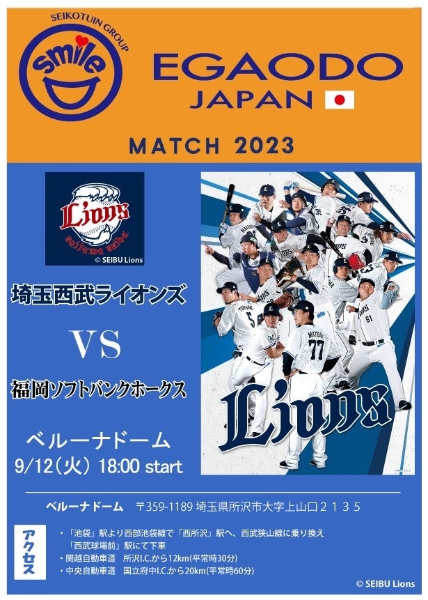 プロ野球チーム「埼玉西武ライオンズ」笑顔道整⾻院グループ「EGAODO MATCH 2023」開催
