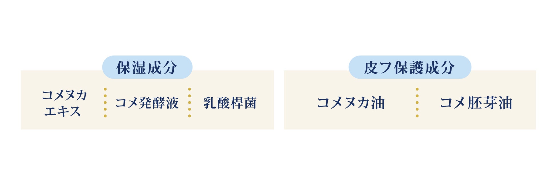 保湿成分:コメヌカエキス、コメ発酵液、乳酸桿菌