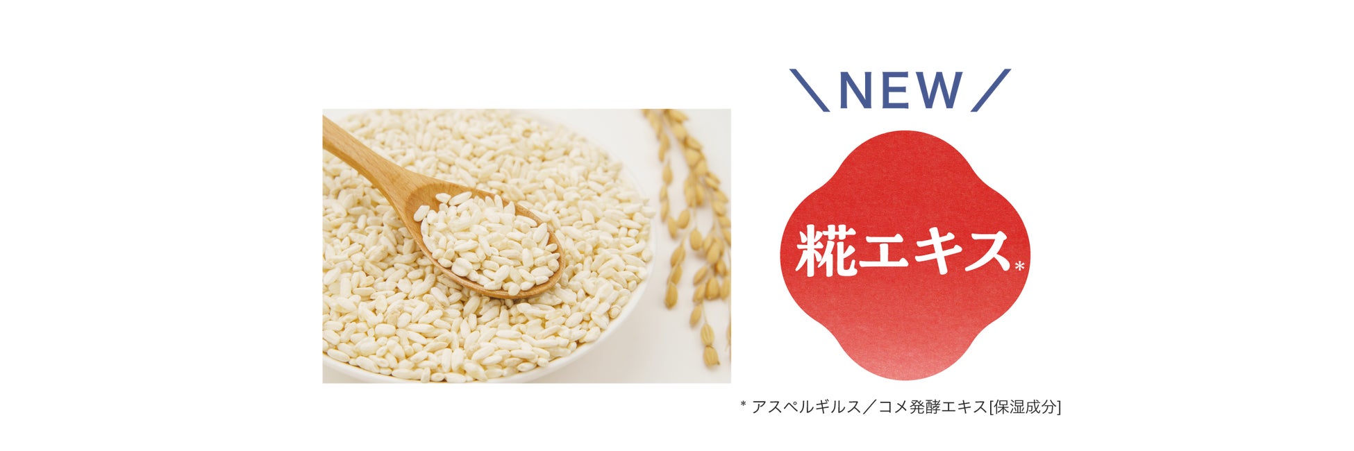 新配合した糀エキス*4で乾燥によるくすみをケア。しっとり透明感*2のある肌に導きます。