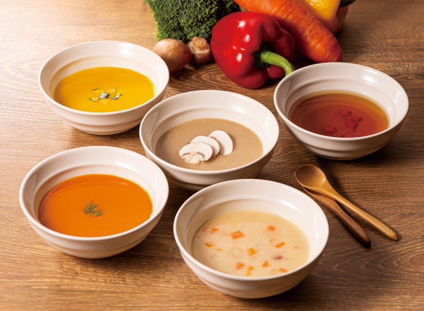 ・10種野菜のクリームスープ:10種類の野菜の旨味を凝縮し、滑らかクリーミーに仕上げた逸品です。