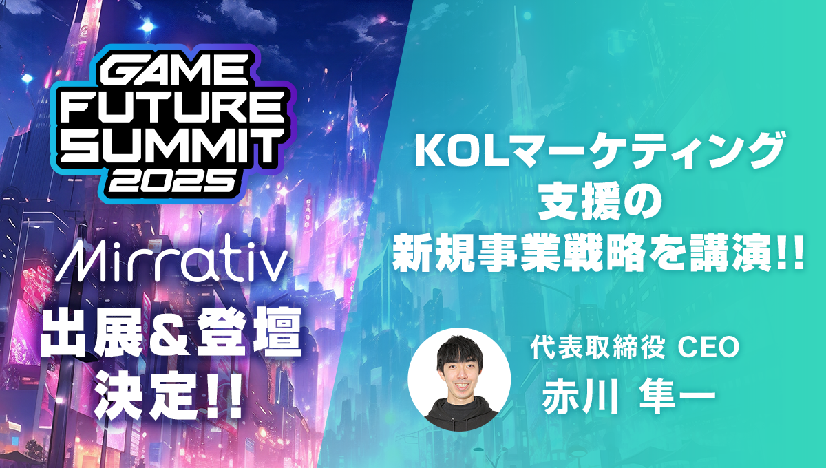 ミラティブ×「GAME FUTURE SUMMIT 2025」 出展&登壇決定!CEO赤川がVTuber/ストリーマーと連携したマーケティング支援の新規事業戦略を講演